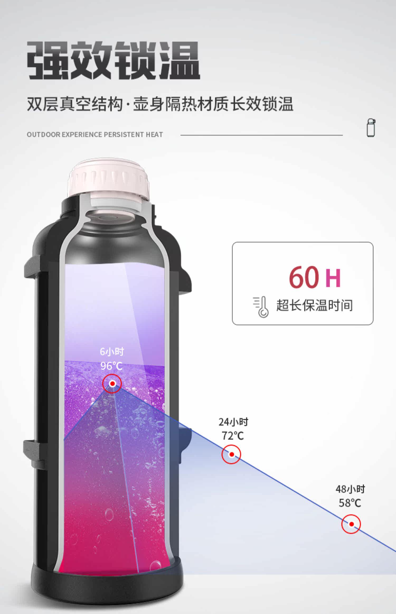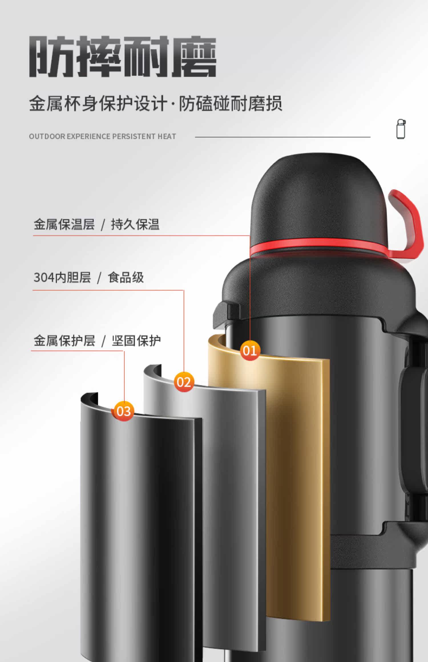 Вместительный и большой термос, большой чайник для путешествий из нержавеющей стали, объем 304