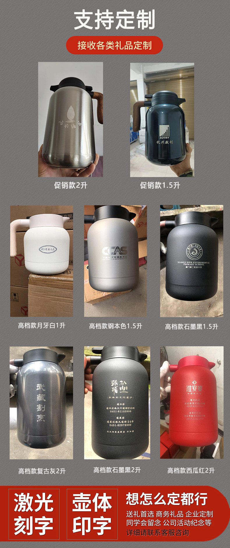 Термос из нержавеющей стали, вместительный и большой чайник для домашнего использования для гостиной с гравюрой, делается под заказ