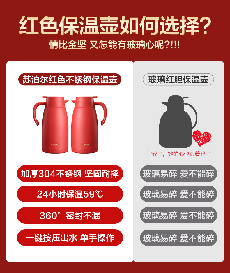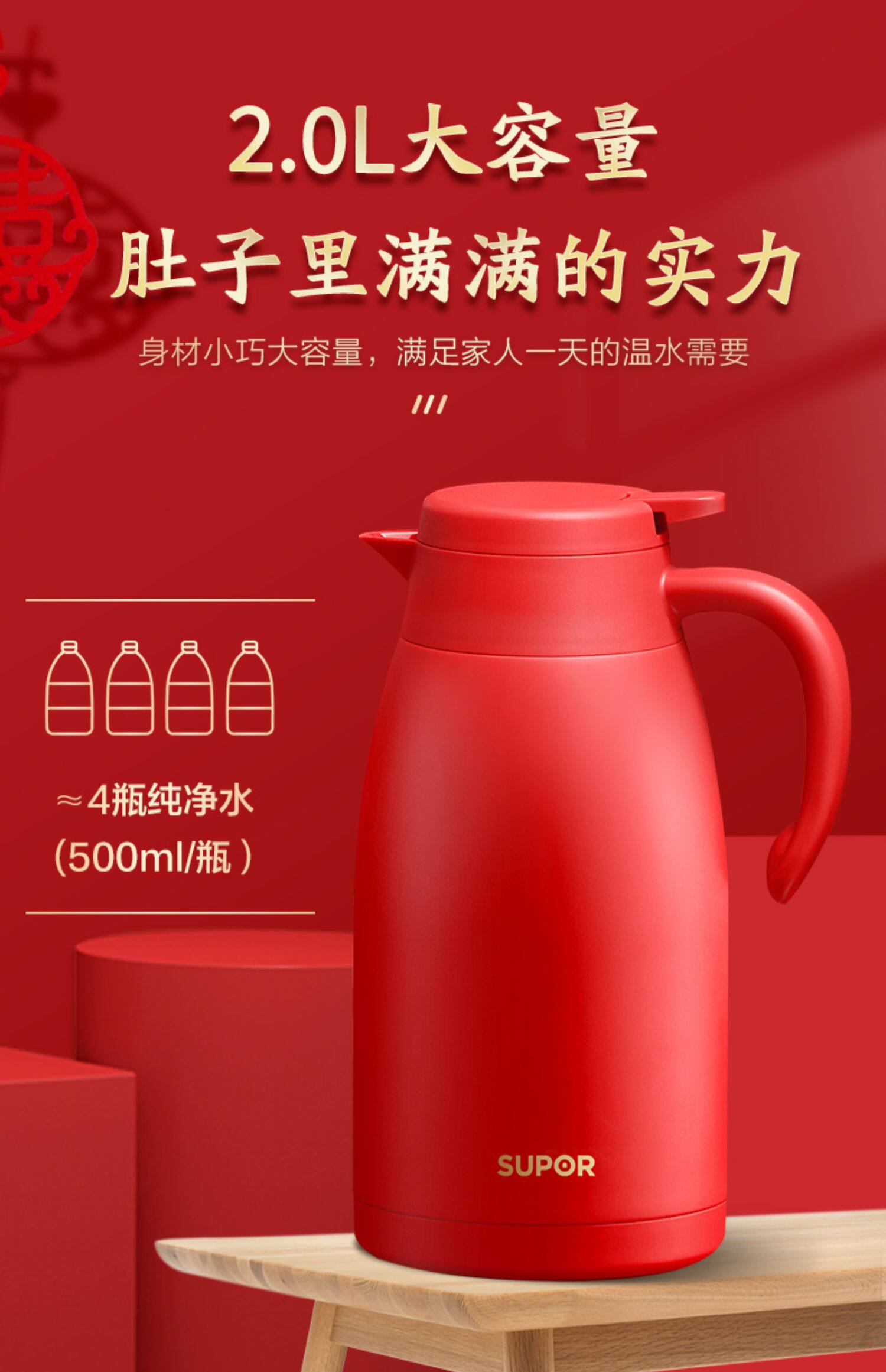 Термос, красный вместительный и большой чайник из нержавеющей стали для домашнего использования