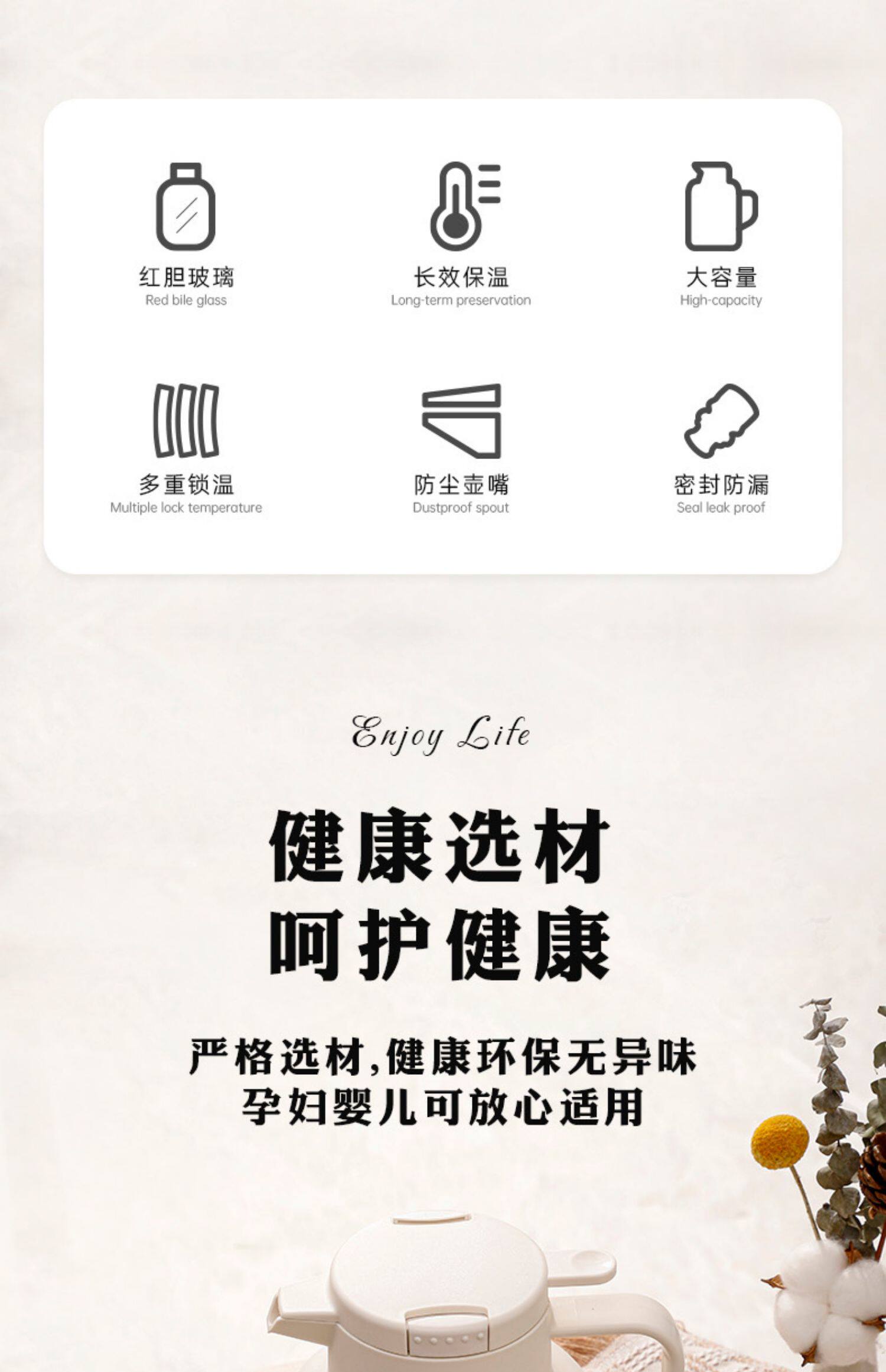 Термос для домашнего использования, вместительный и большой стеклянный вкладыш, чайник