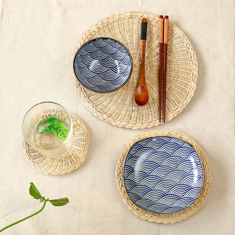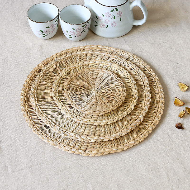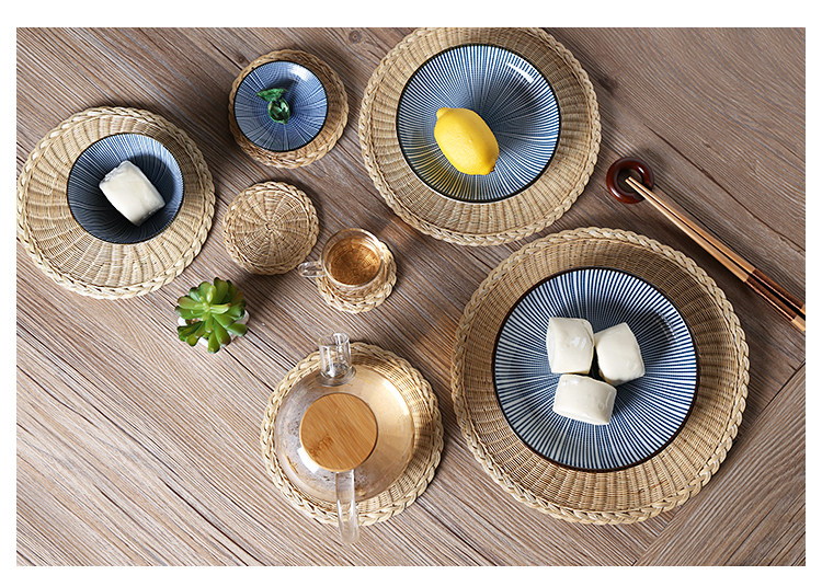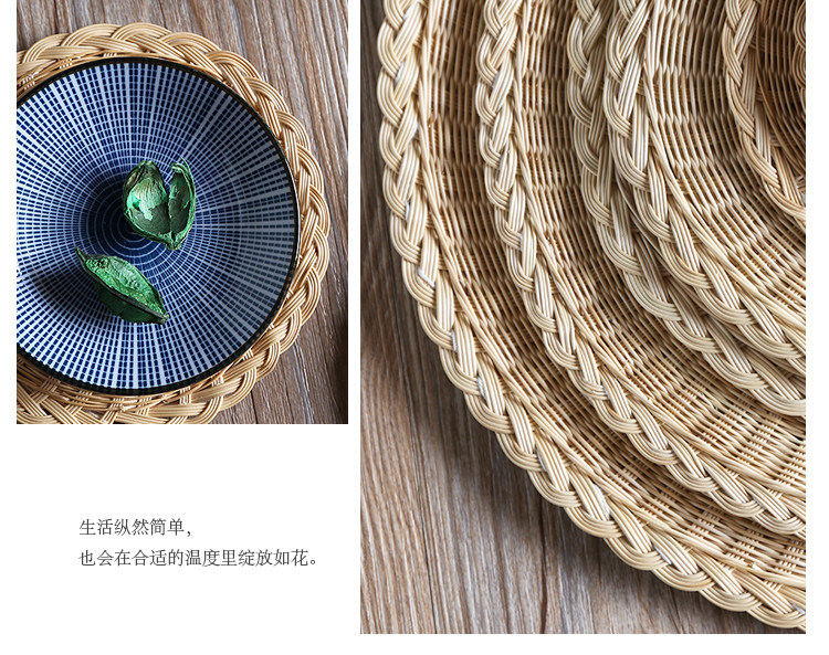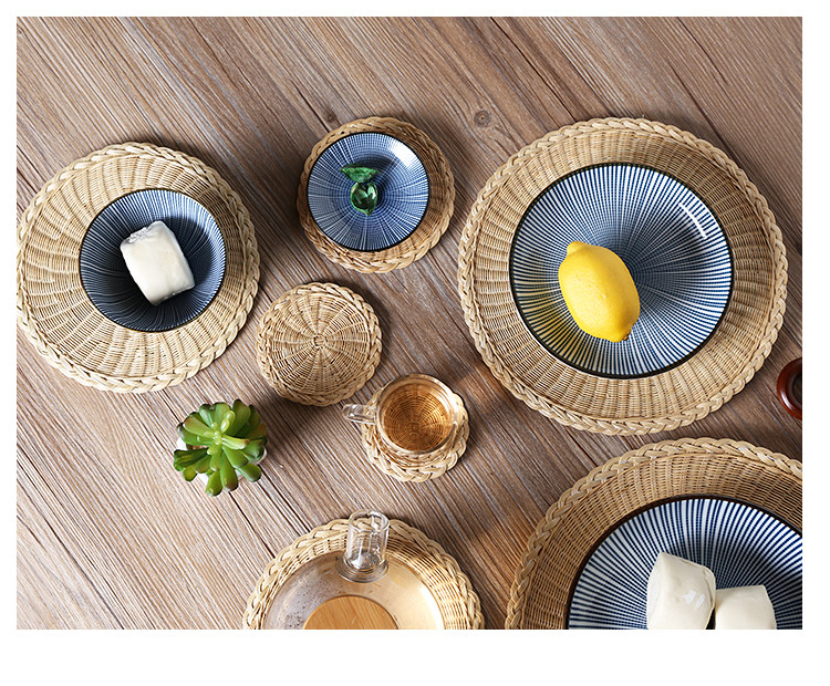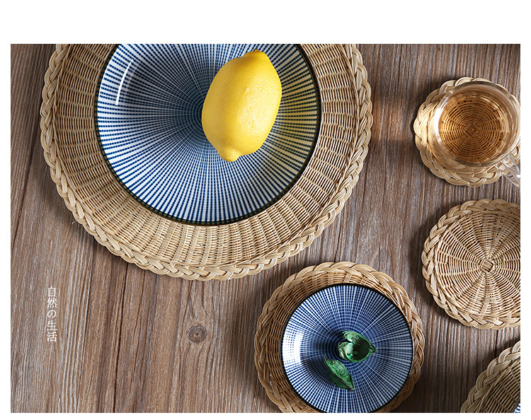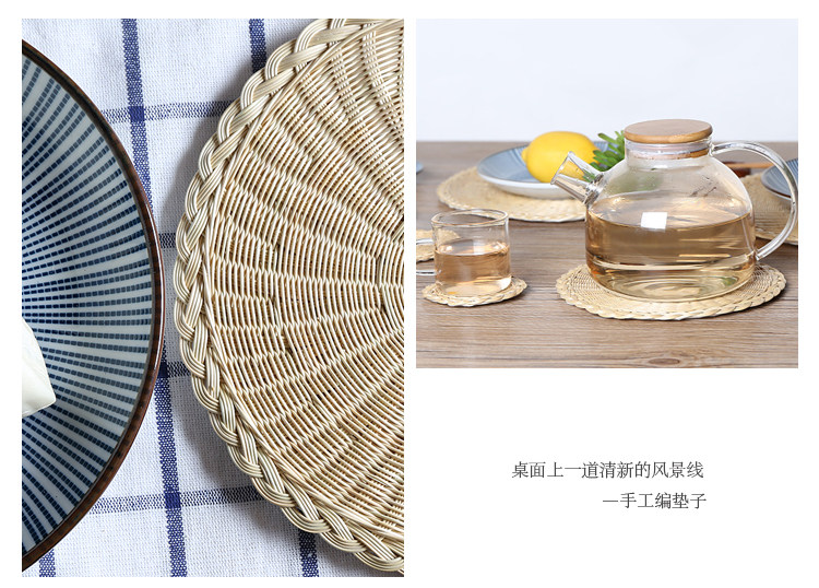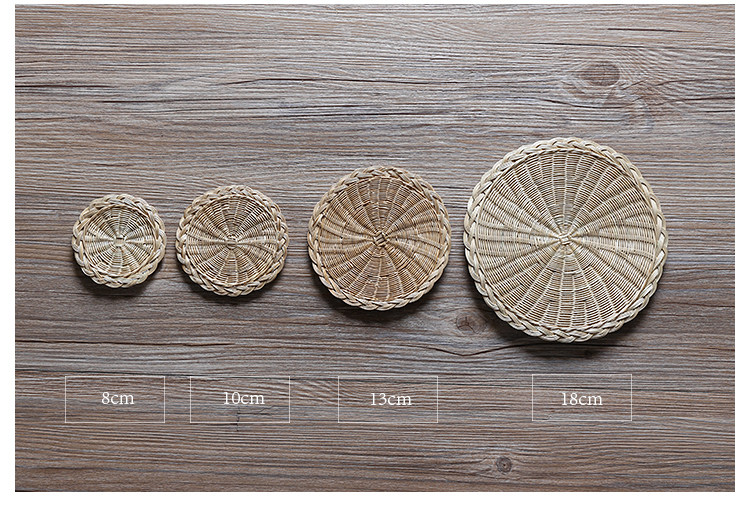 Соломенная плетеная круглая посуда, чайная чашка, нескользящий настольный коврик