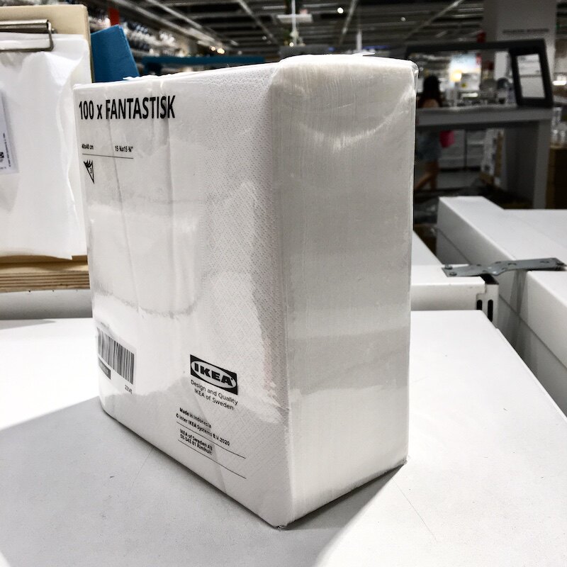 Ikea, белые бумажные салфетки, квадратная посуда