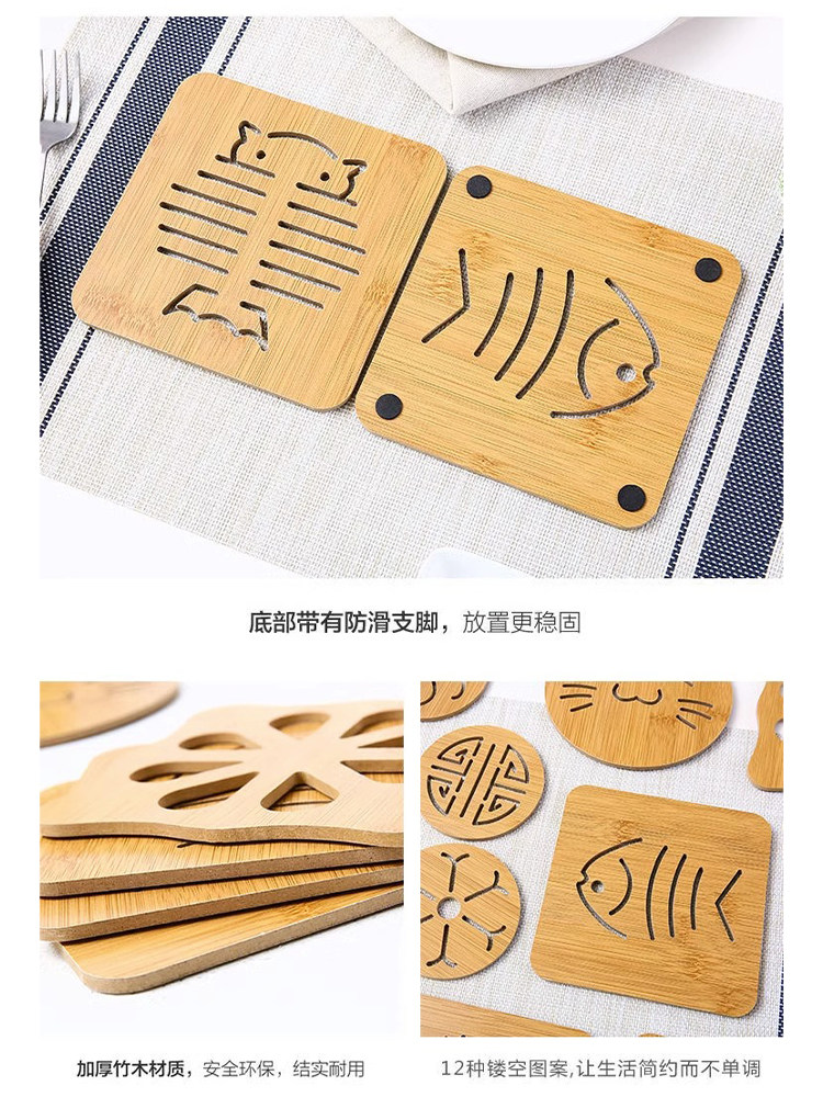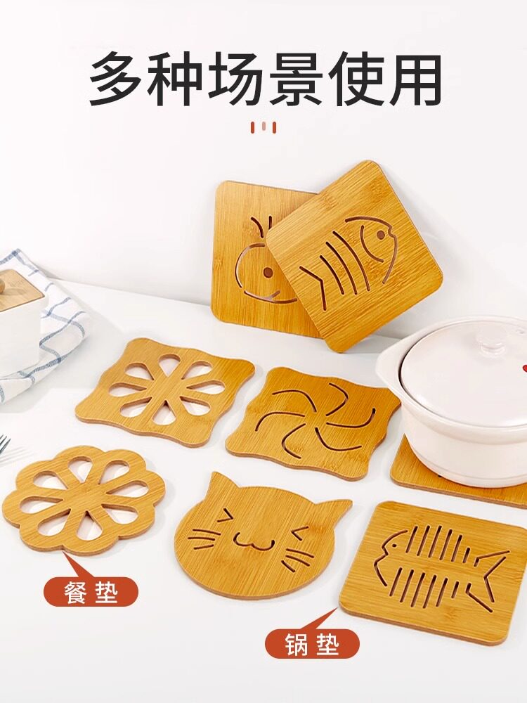 Деревянный нескользящий мультяшный настольный коврик, защита от ожогов