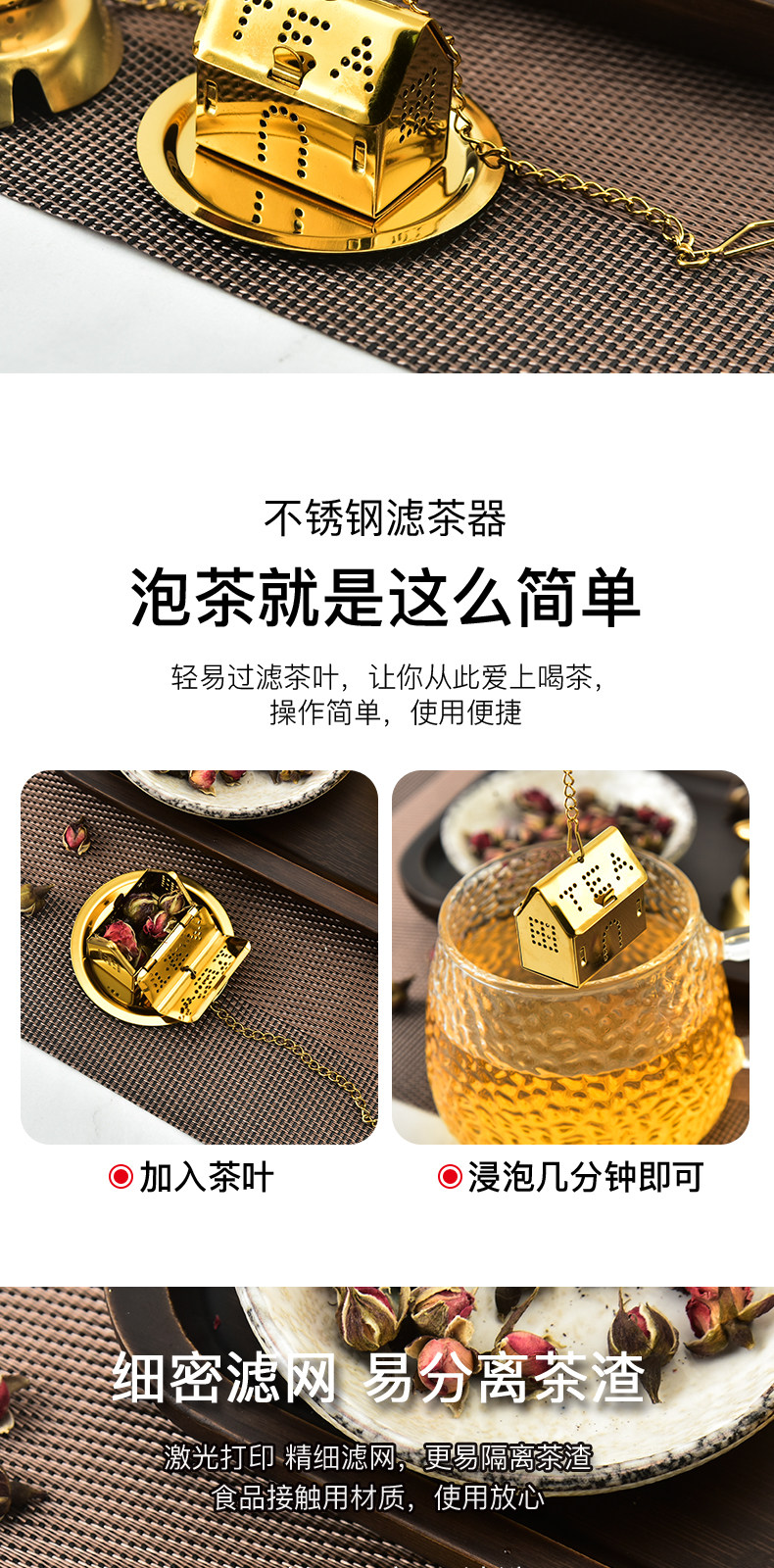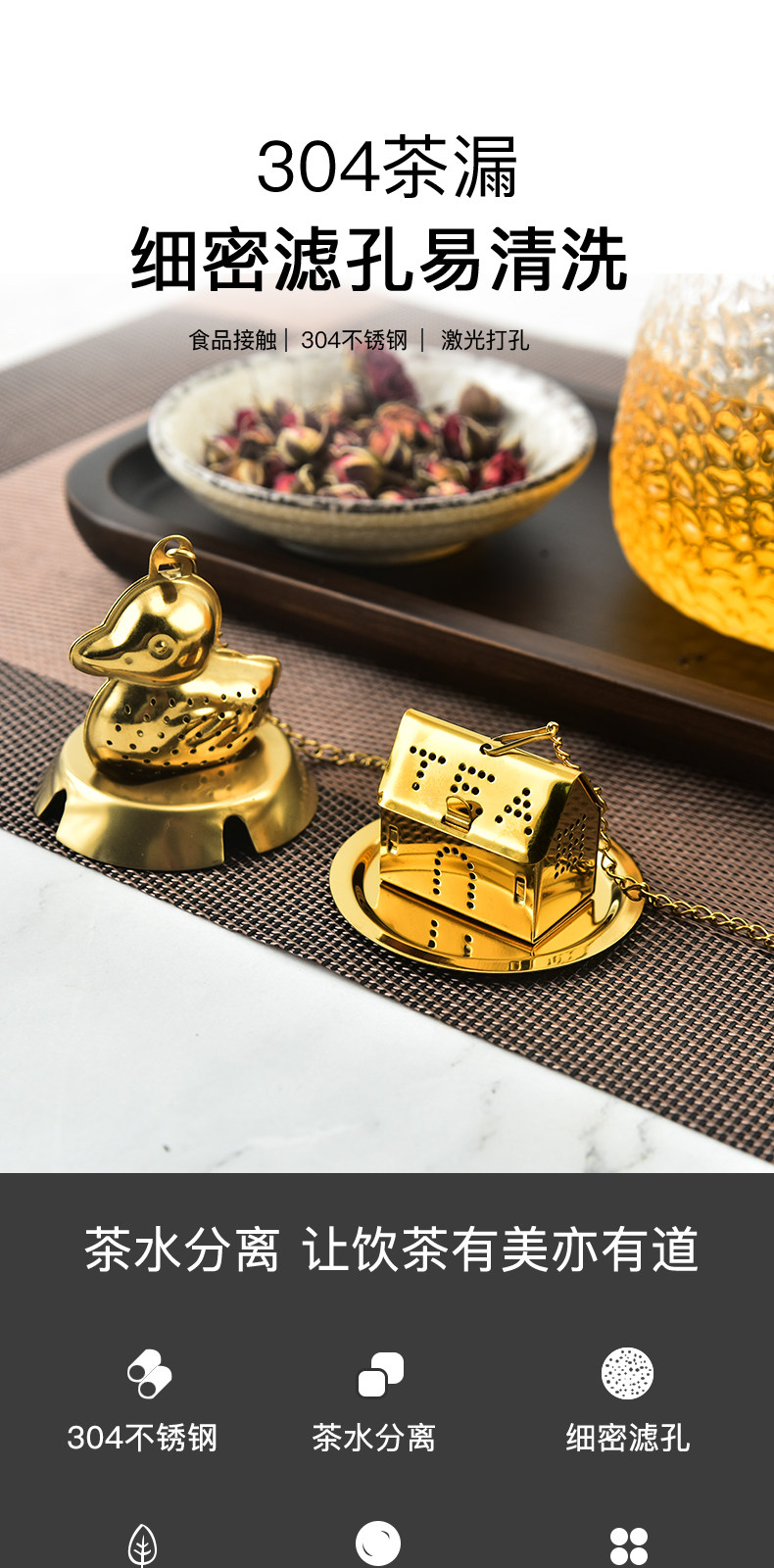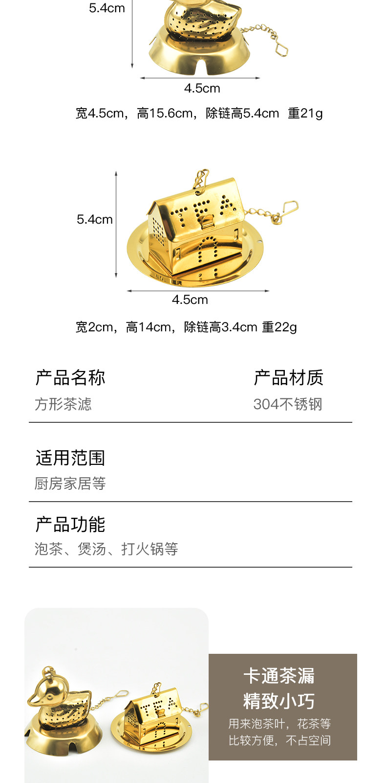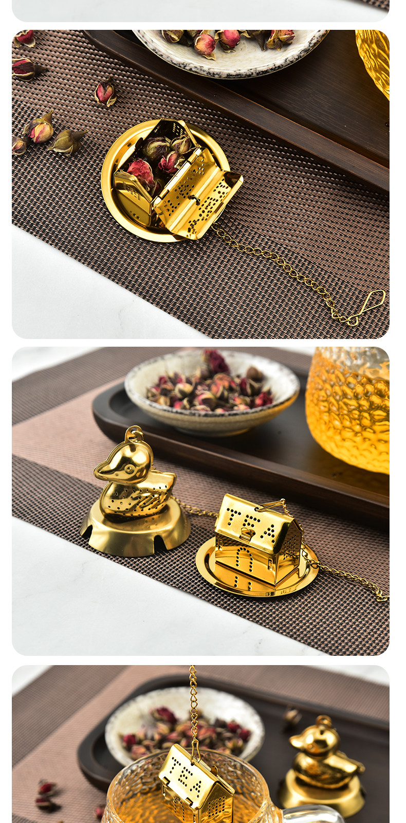 Золотой домик из нержавеющей стали, чай, (в наличии на складе), утка