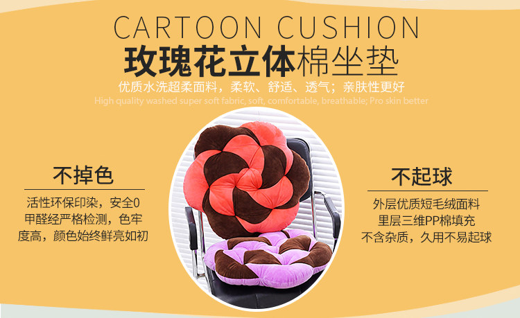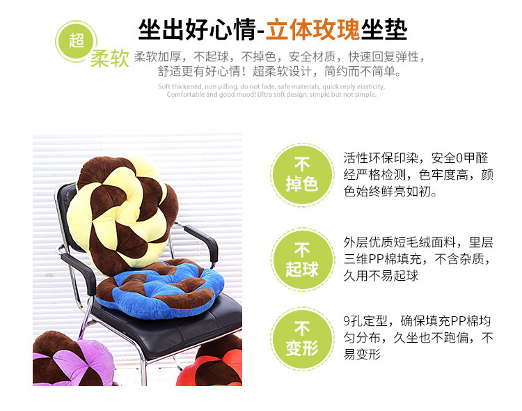 Розовая трехмерная ультра -софта -хлопковая подушка офисное кресло, утолщенное обеденное кресло для студенческого сиденья, панель табуретки