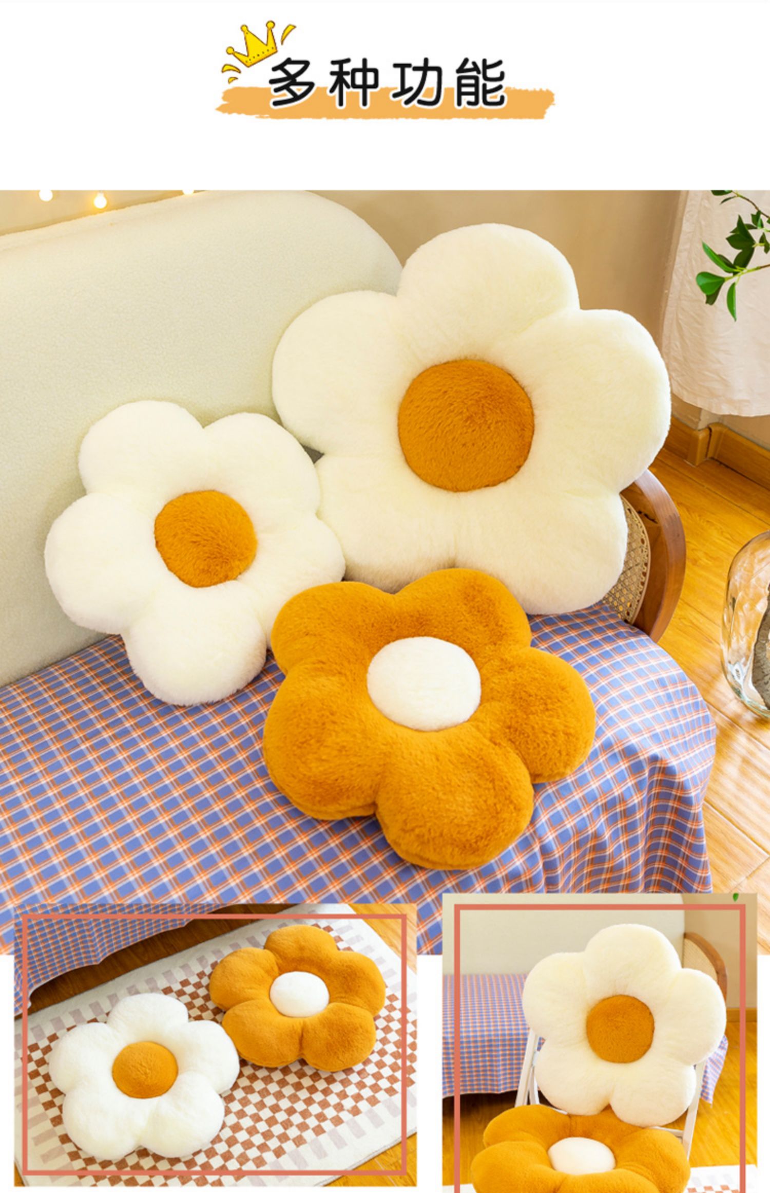 Кукла, круглая плюшевая подушка, мягкий диван, увеличенная толщина, в цветочек