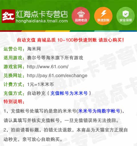 Продавец:红海点卡专营店
