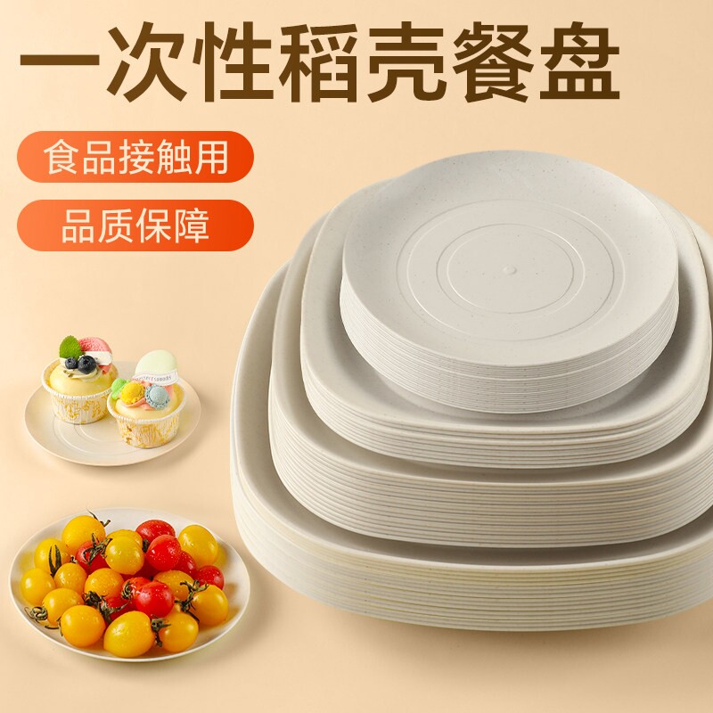 Одноразовая тарелка для еды, миска для риса, тарелка для барбекю, фруктовая тарелка, костная тарелка, посуда для пикника, тарелка из рисовой шелухи, реклама