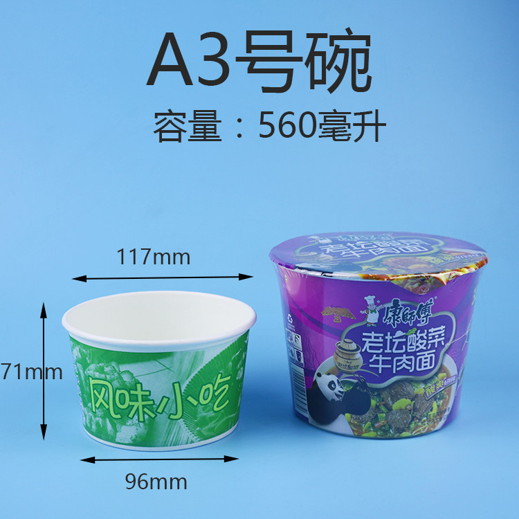 A3 Bowl 560 мл одноразовая бумажная чаша Планирующая чайная чайная бумага из чаша Стинка из рисовой лапши с рисовой лапшой.