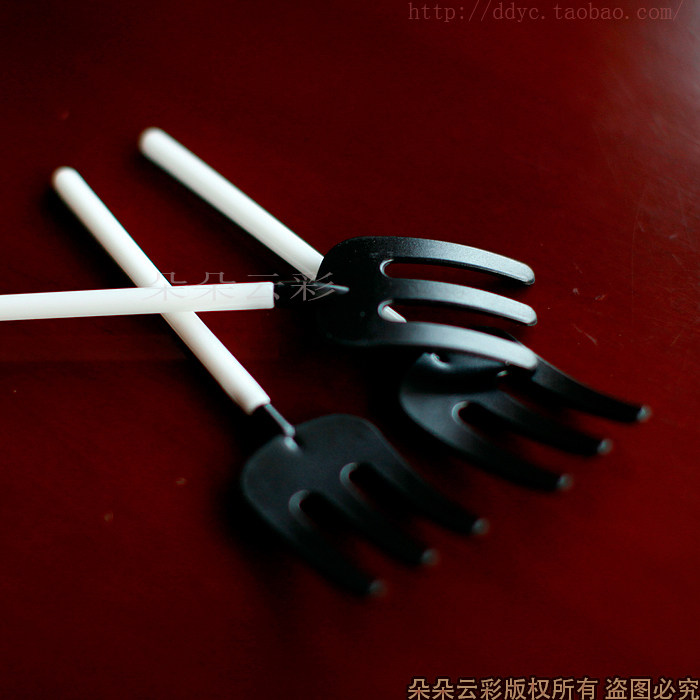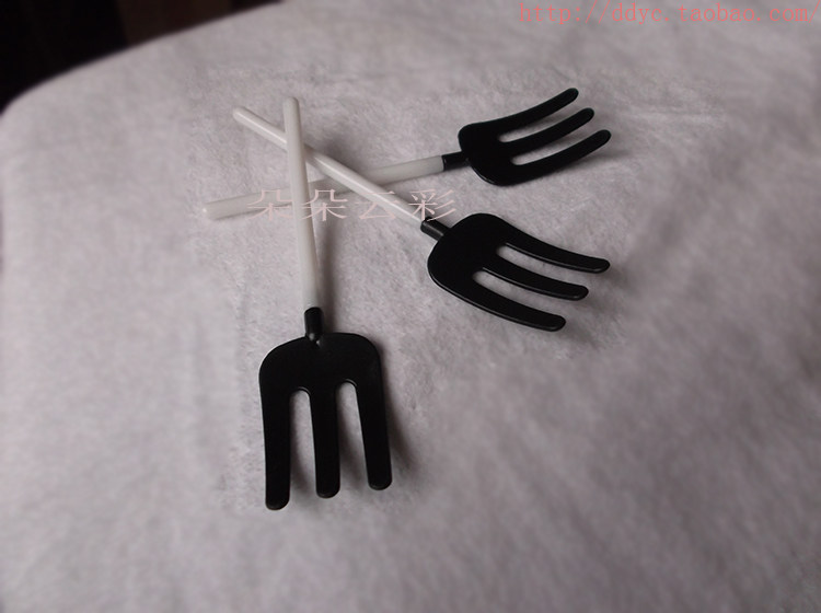 Объем 0,26 юань/поддерживающая лопата вилка творческая одноразовая одноразовая пластиковая черно -белая 3 зубных пирога запеченная посуда и вилка