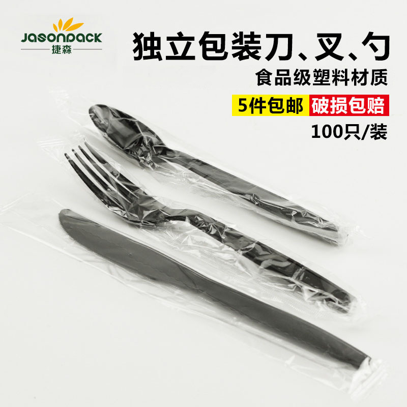 Пластиковая вилка, пакет, черная посуда, 7 дюймов, 5 шт