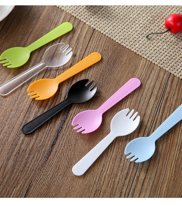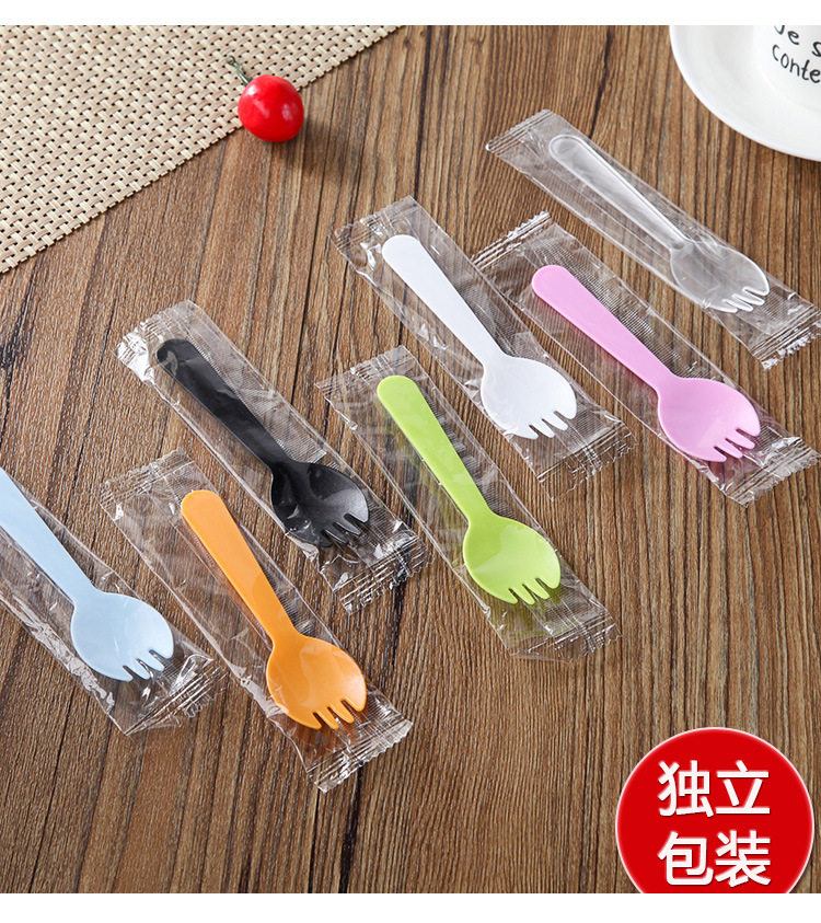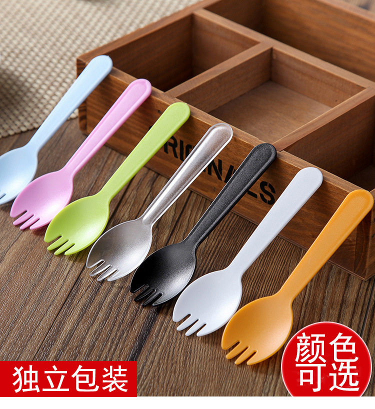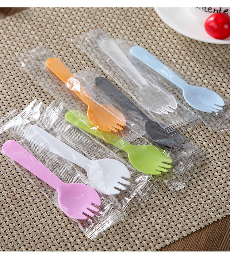 Толстый одноразовый пластиковый пирог с тремя зубчатой ложкой ложки десерт торт -нож вилка ложка интегрированная независимая упаковка Бесплатная доставка