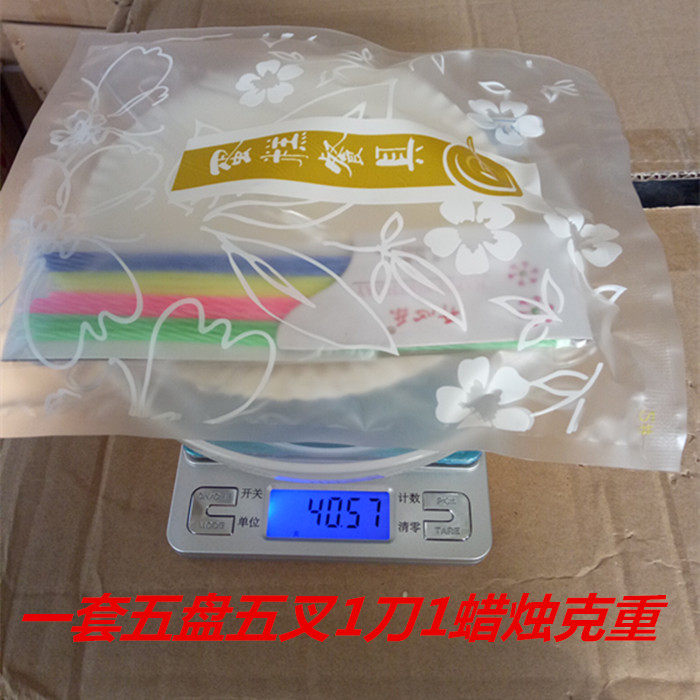 100 комплектов бесплатных цен на доставку: 5 тарелок, 5 вилок, один нож, мешок с свечами 1,3/набор,