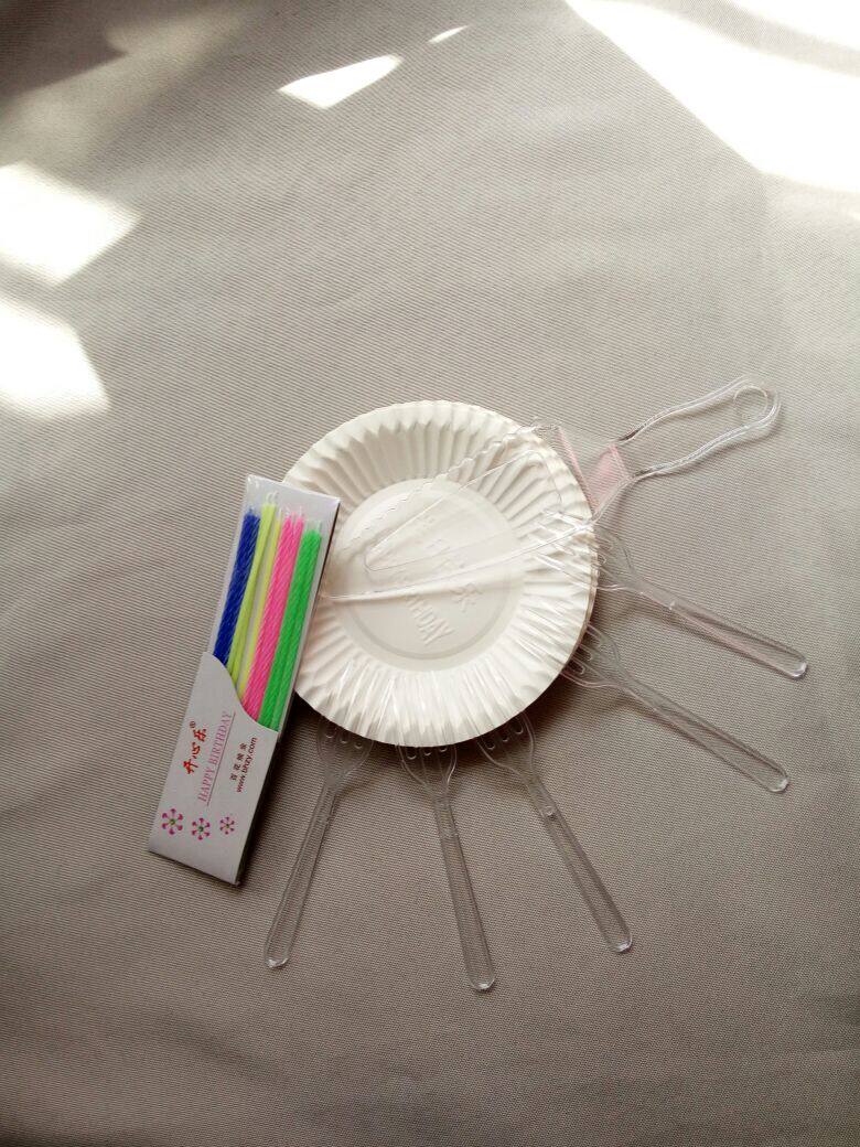 5 тарелок, 5 вилок, большой нож, мешок с свечами 1.55/set,