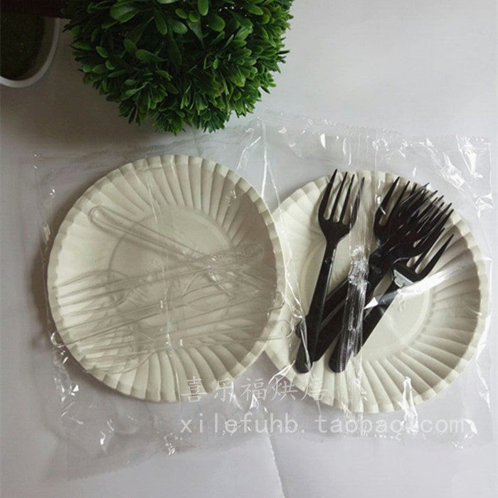 Одноразовая нить торт тарелка вилка групповая торт, тарелка, пластинка, 5 пластин 5 вилка Независимая упаковка