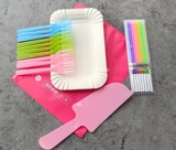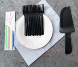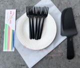 Толстый бумажный диск 250 граммов диаметра 14,5 см,Есть два варианта: замороженные и составные светлые сумки в черном ноже и вилке.