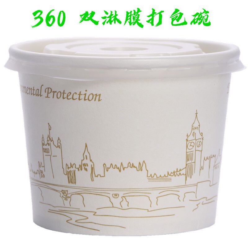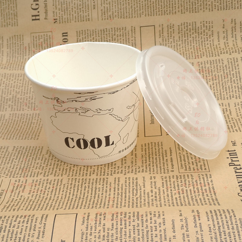 Одноразовая упаковочная коробка суп чашка чашка чашка 360 мл круглой бумажной чаши пузырьковая чаша для льда десерт с крышкой с крышкой