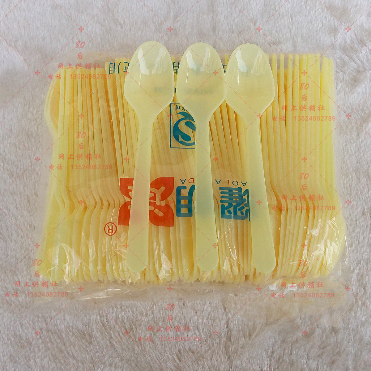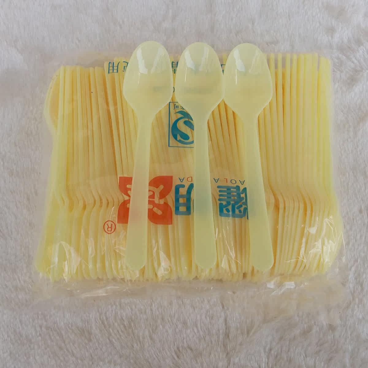 Одноразовая ложка, желтый пластиковый пакет для мороженого