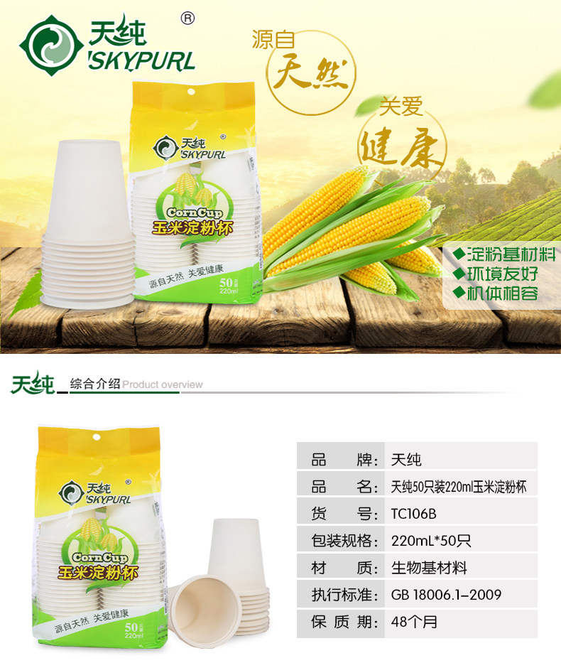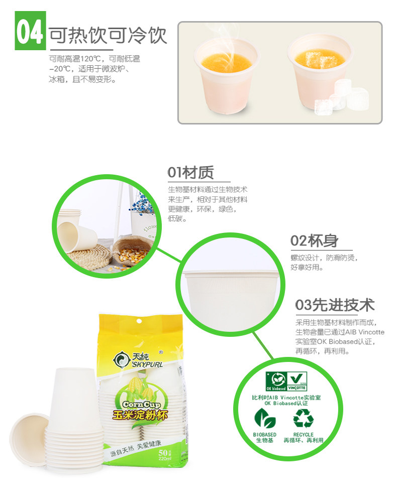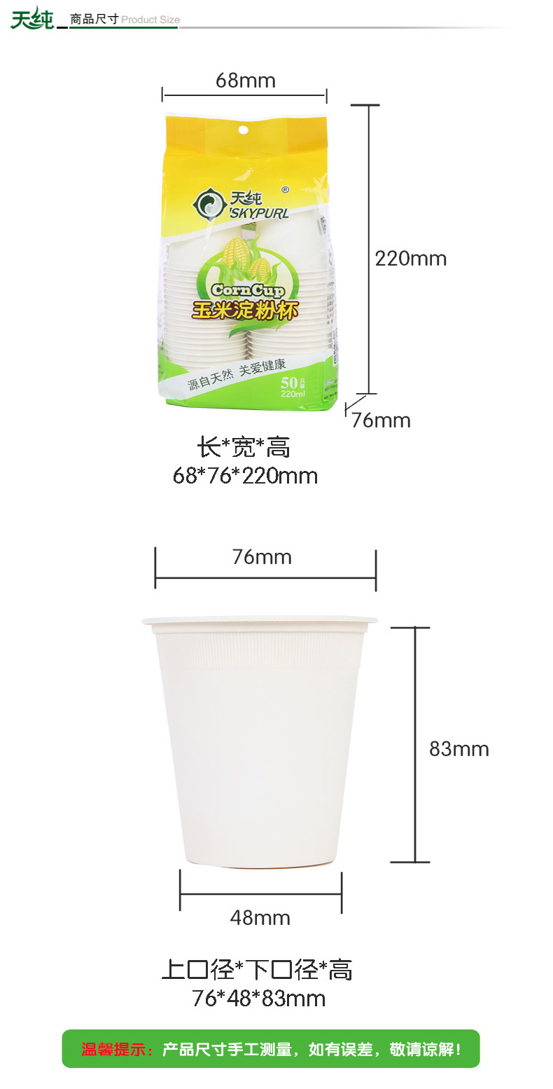 Тянчун одноразовый кукурузный крахмал чашка суб -чашки домашней чашки толстая, не -деформация, без утечки, высокотемпературная деловая чашка для водяной чашки бизнеса