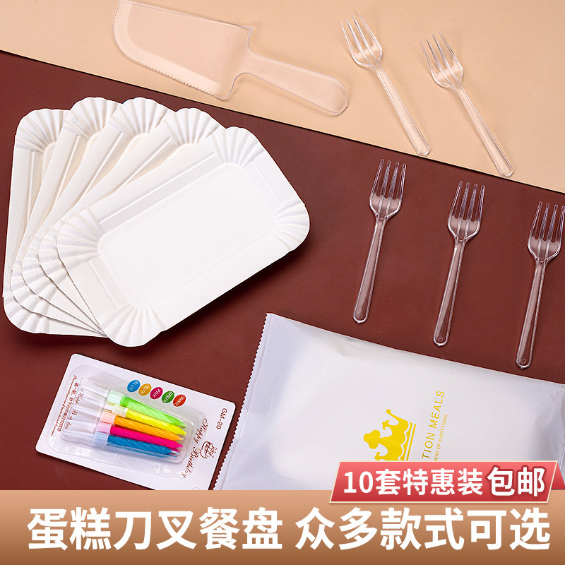 Набор посуды для торта одноразовый торт, вилка ножа, биологический торт ко дню рождения, нож и вилк, комбинация бумажного диска на день рождения