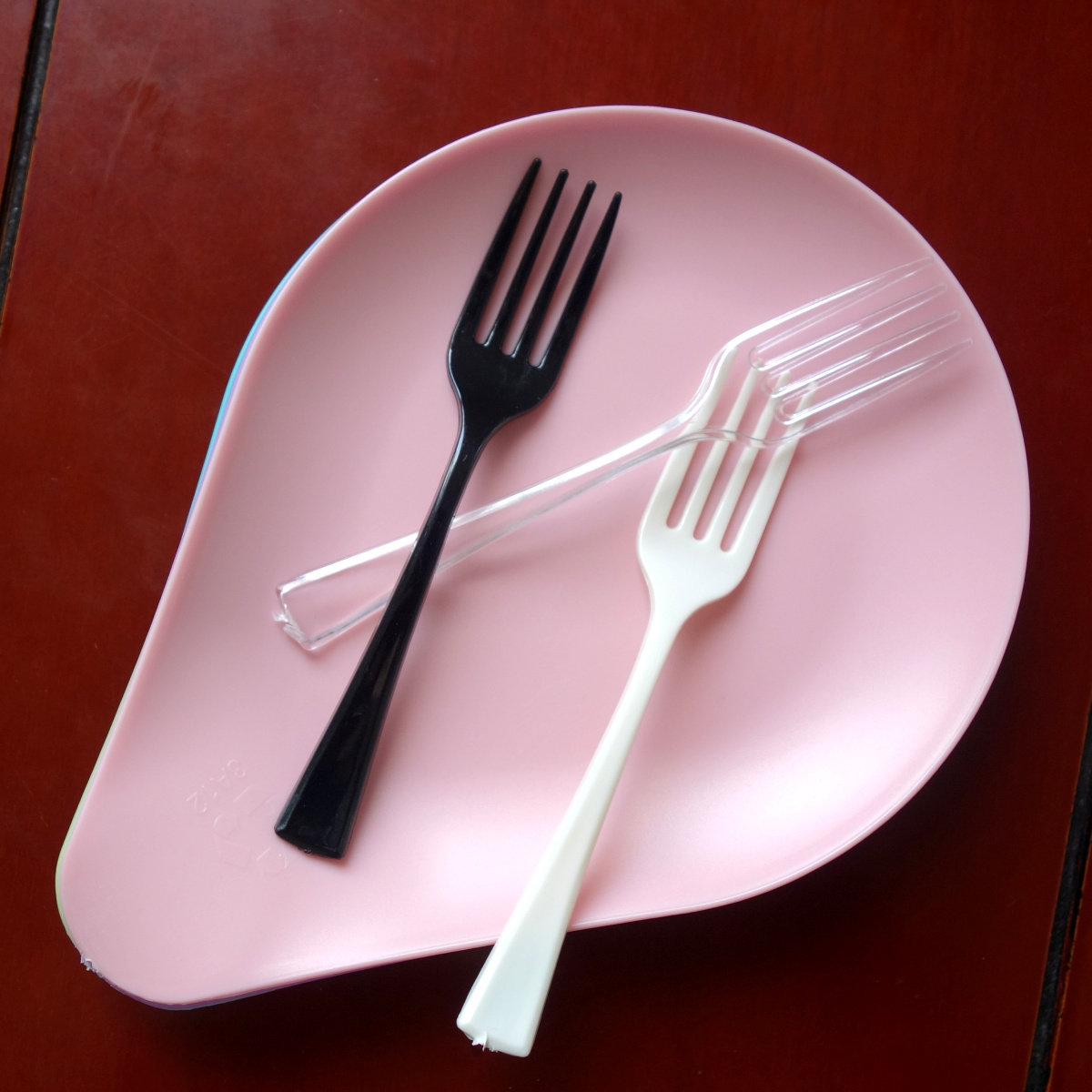 Одноразовая кристаллическая пластиковая вилка -чтобы разгромить экологически чистый диск для насыщенного посуда.
