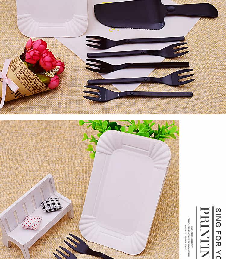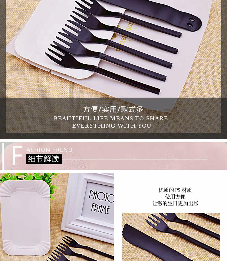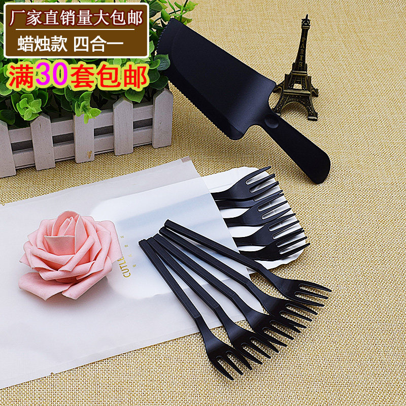 Одноразовый комплект, черная прозрачная посуда, десертная вилка для фруктов