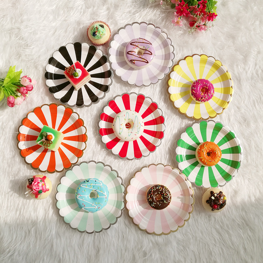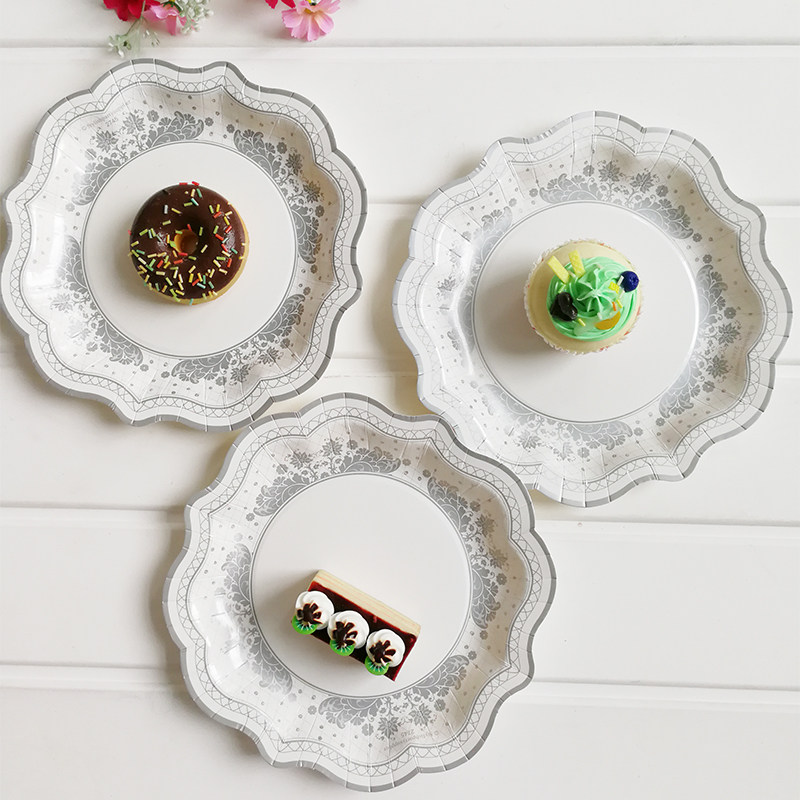 Цветная бумажная лотка одноразовая тарелка детская вечеринка на столовую посуду десерт десерт десертные украшения белый диск вечеринка по случаю дня рождения торт