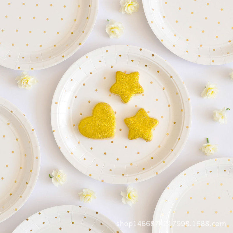 Детская тематическая посылка на день рождения, украшение для вечеринки, одноразовая посуда, горячее тиснение, бумажная тарелка в горошек, бумажный стаканчик