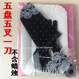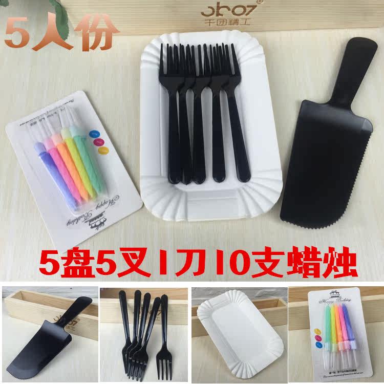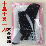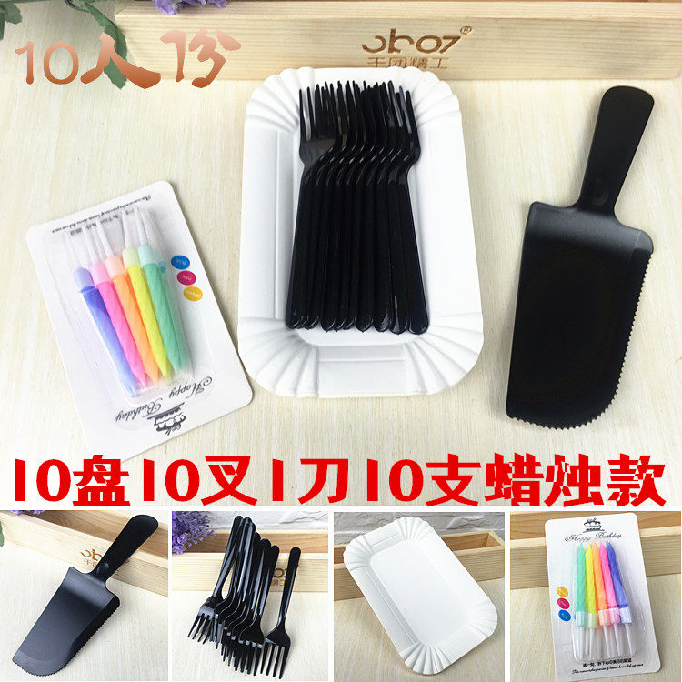 Высокий прямоугольный нож и вил -диски в сочетании с одноразовым дневником для пирожного торта 10 тарелок, 10 четырех -футовых вилок 1 нож