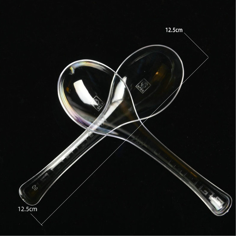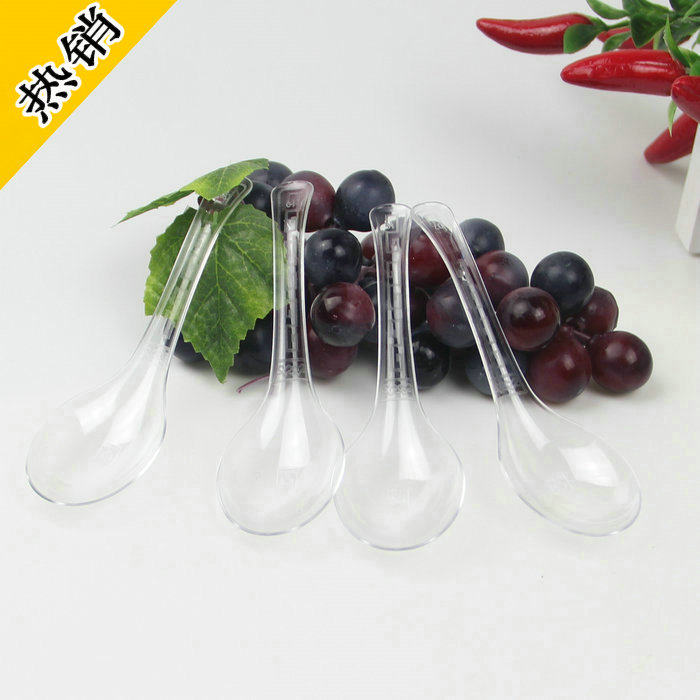 Магазин возвращается к тысячам жесткой одноразовой ложки, утолщенной пластиковой десерты, ложки супа, прозрачного йогуртного рисунка вилочного набора ложек 100
