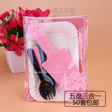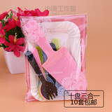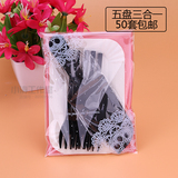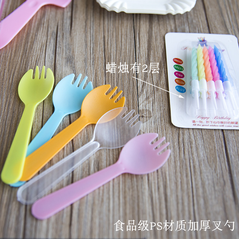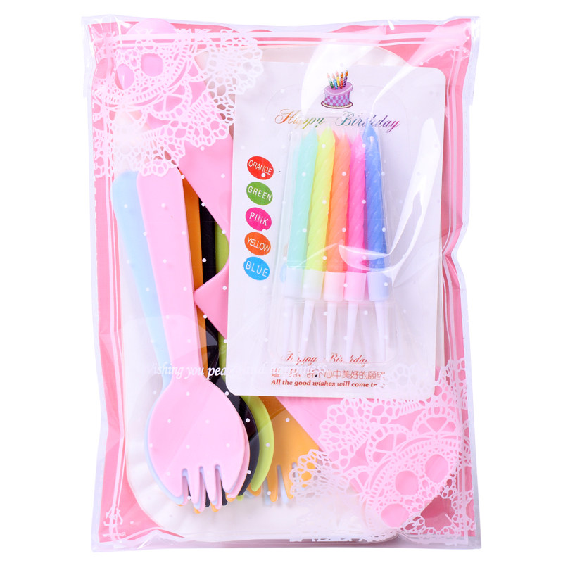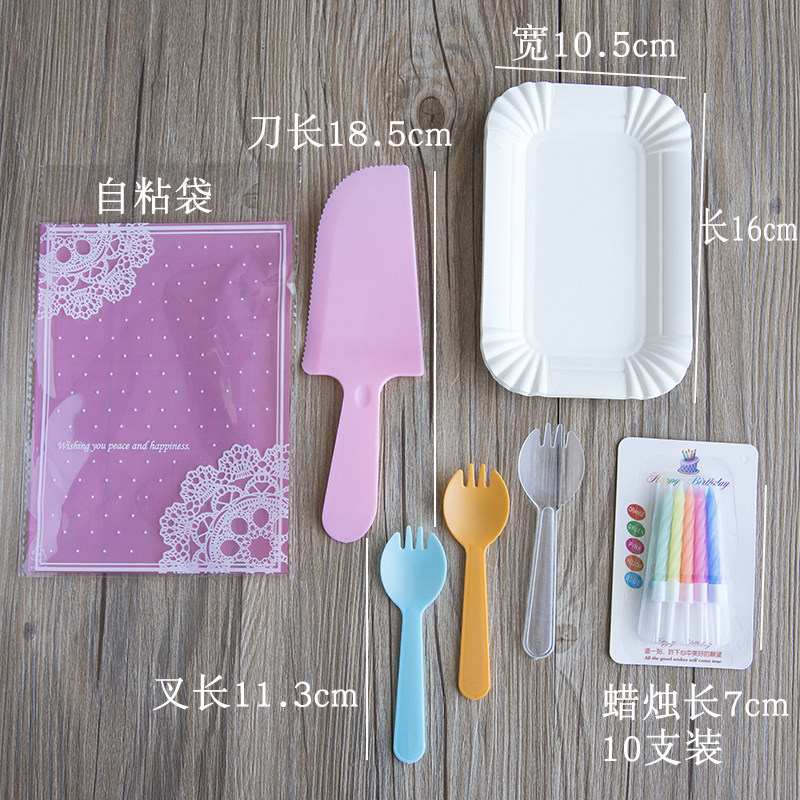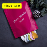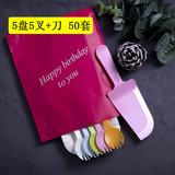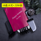 Торт ко дню рождения, посуда, ножа и вилка, набор одноразовых тарелок, одна цветная ложка вилка 10 комплектов из 50 комплектов бесплатной доставки