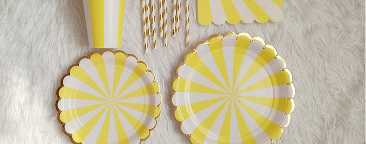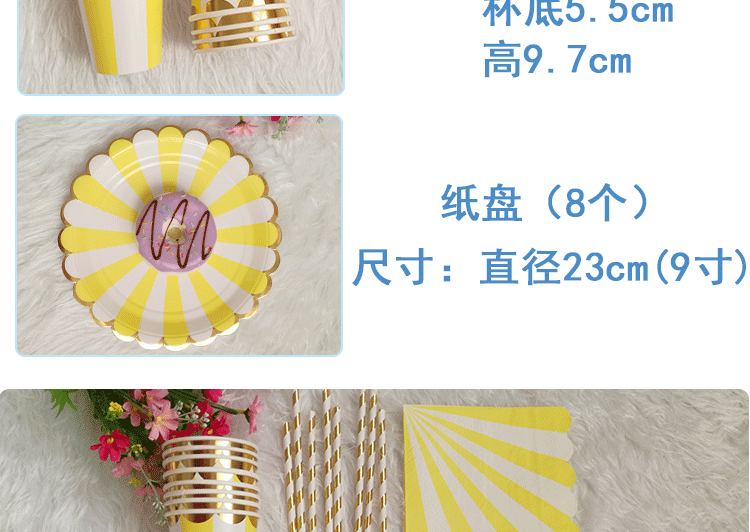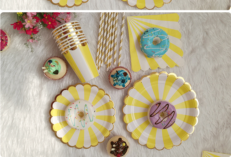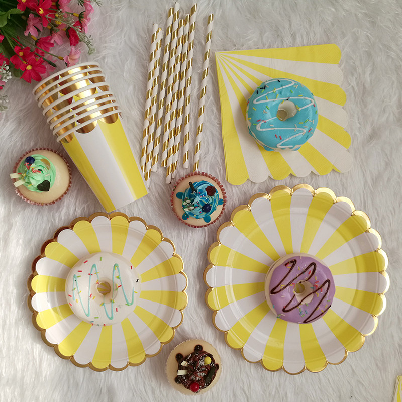 Вечеринка декоративные принадлежности усыпают ярко -цветную посуду желтую полоса Золотая золотая золотая бумага чашка бумага бумага бумага для пирога