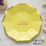 Высокая бумажная тарелка торт блюдо желтое на день рождения столик для вечеринки по прибаву горячее золото одноразовое бумажное чашка соломинка