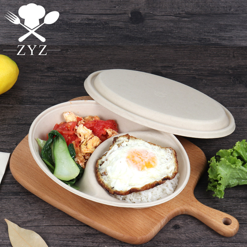 Разлагаемая одноразовая пульпа -ланч коробка вынос с фруктами фруктовые суши Bento Double -Grid Light Food Box