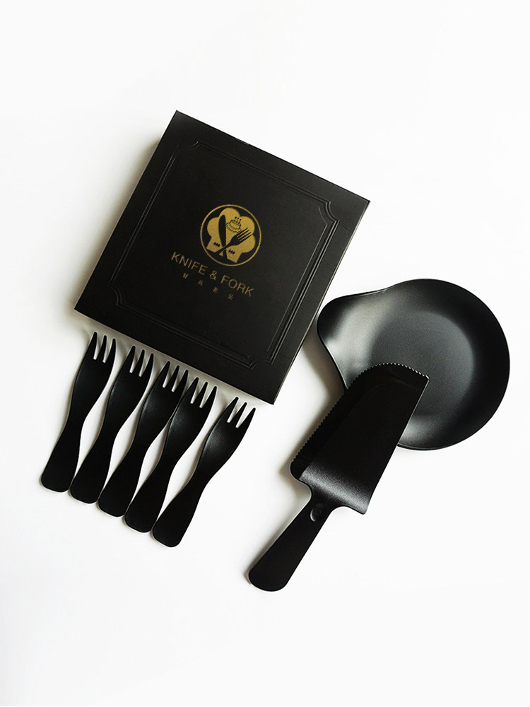 - (Синий) 5 тарелок 5 вилочная лопата+длинная подарочная коробка