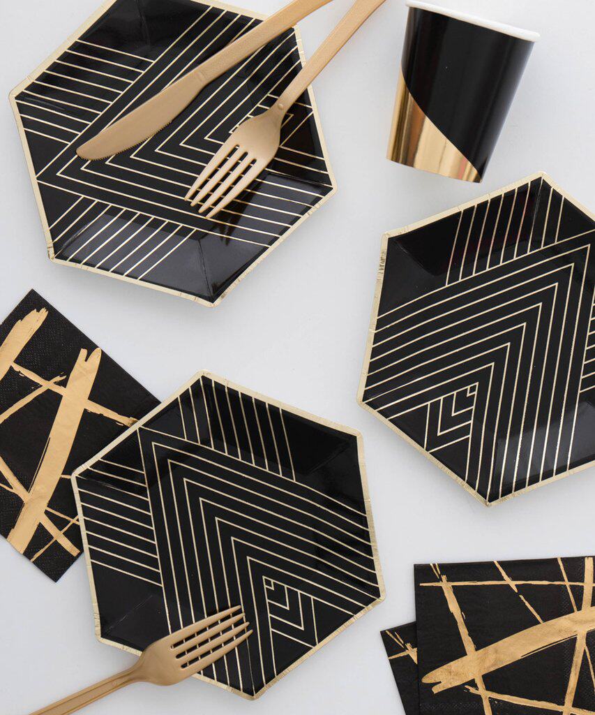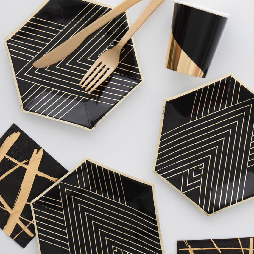 Золотая фольга вечеринка чашки для салфетки черные распределительные бумажные дисковые чашка чашка чашки