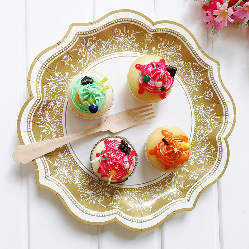 6 30 см бумажной тарелки золотые цветы