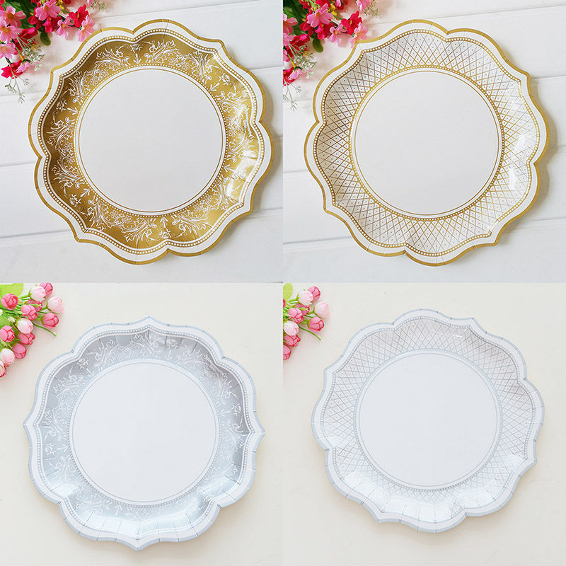 Большой сервировочный поднос, тарелка для вечеринок, пластиковая золотая и серебряная большая бумажная тарелка 30 см