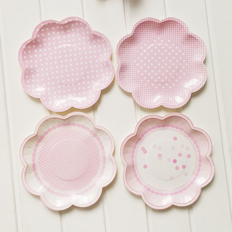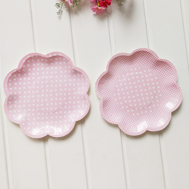 - 8 20,5 см бумажной тарелки розовые точки и 2 упаковки и 2 модели