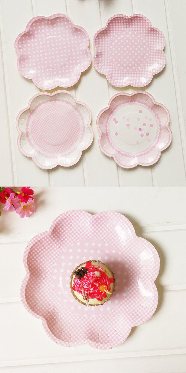 - 8 20,5 см бумажной тарелки розовые пятна 1 упаковка и 2 модели
