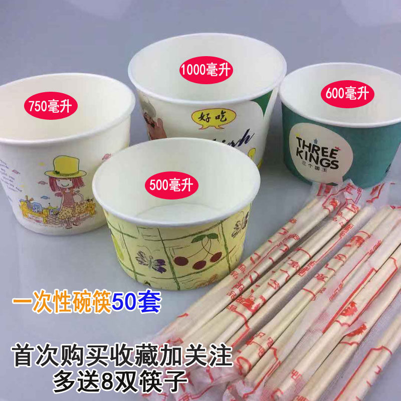 Толстая одноразовая экологически чистое экологически чистое посуду для бумаги и чаши, посуда для посуды, посуда, бумажная чашка может ухудшить столовую Home 50 с бамбуковыми палочками для еды.
