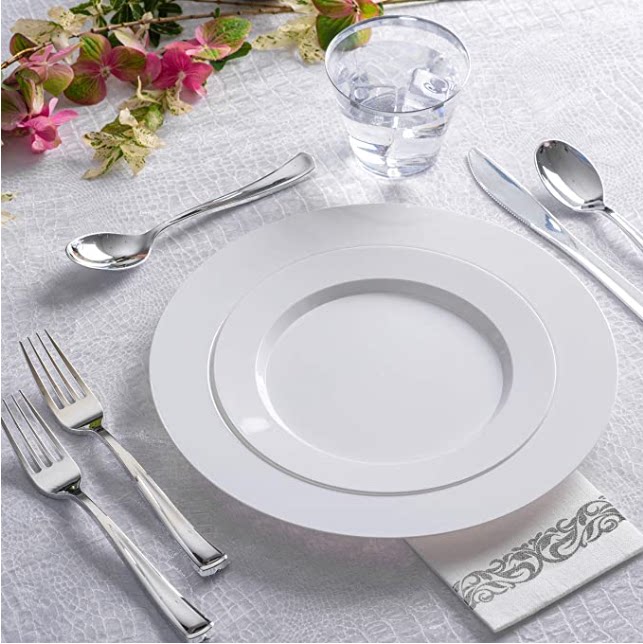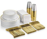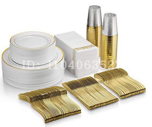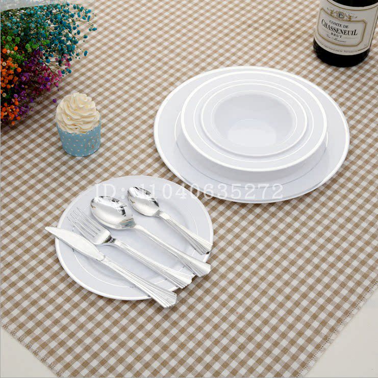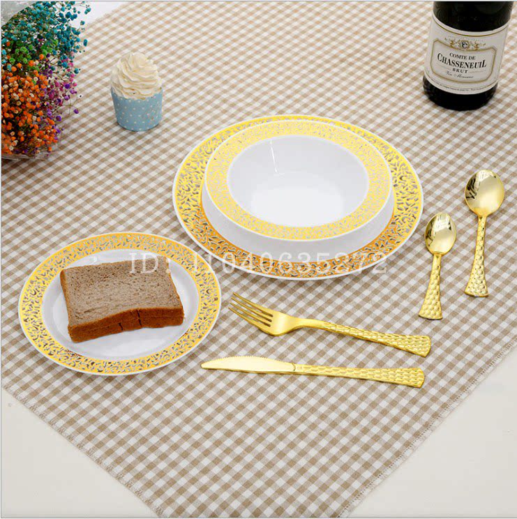 Недопубликоваемая твердая золотая пластиковая тарелка чисто белая круглая имитация фарфоровой фарфор западной пластины