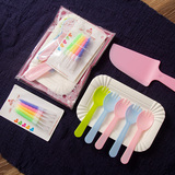 Торт на день рождения одноразовый для торта, ножа и вил, торт, нож разветвления 50 комплектов бесплатной доставки