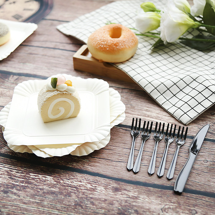 Одноразовая пластиковая посуда, прямоугольная бумажная тарелка, десертный комплект, увеличенная толщина