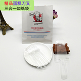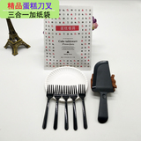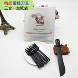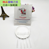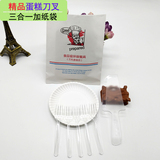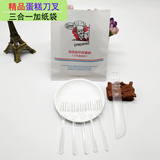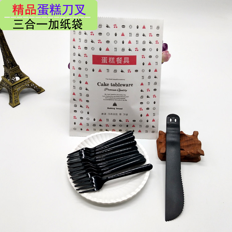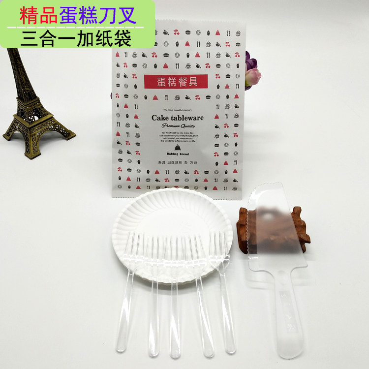 Еда -Пластиковый пирог, набор пластикового пирога, ножа и вилки одноразового дня на день рождения, посуда комбинация круглого диска бумажного пакета с высоким диском