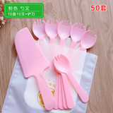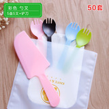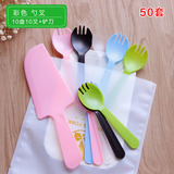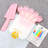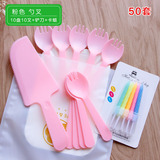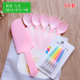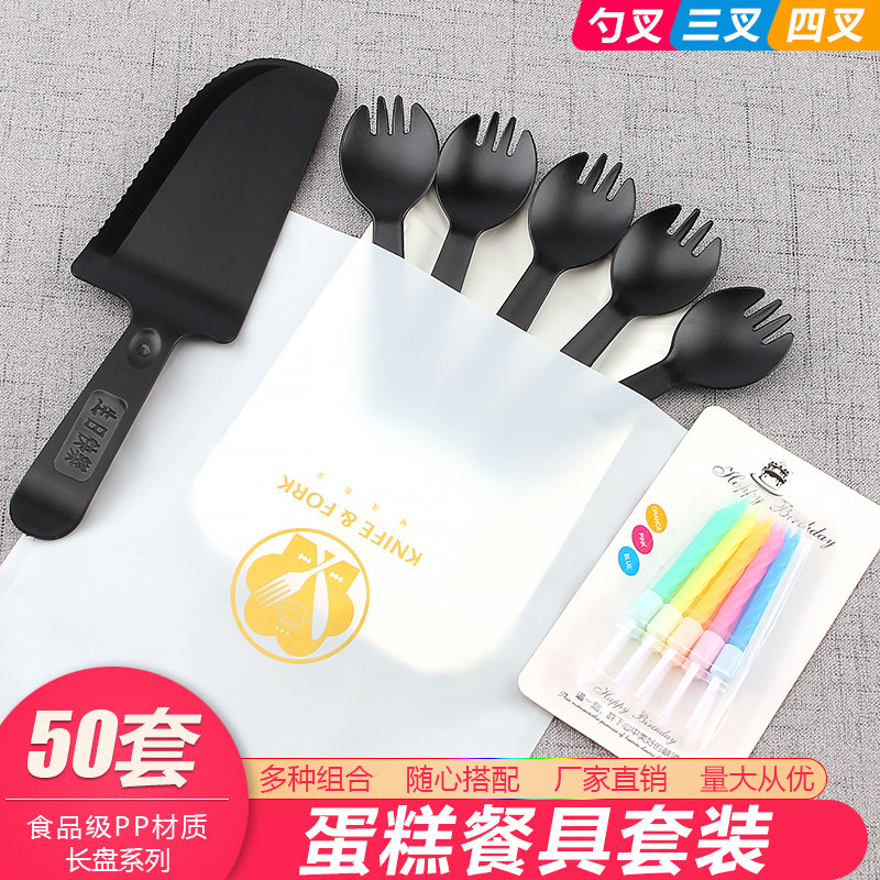 Торт на день рождения, нож и вилка, набор одноразовых бумажных лоток, столовая посуда, тарелка, свеча четыре -в одном комбинации 50 наборов бесплатной доставки