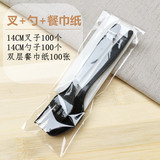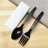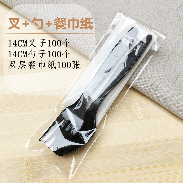 Одноразовый пластиковый комплект, черная ложка, бумажные салфетки, экологичная посуда
