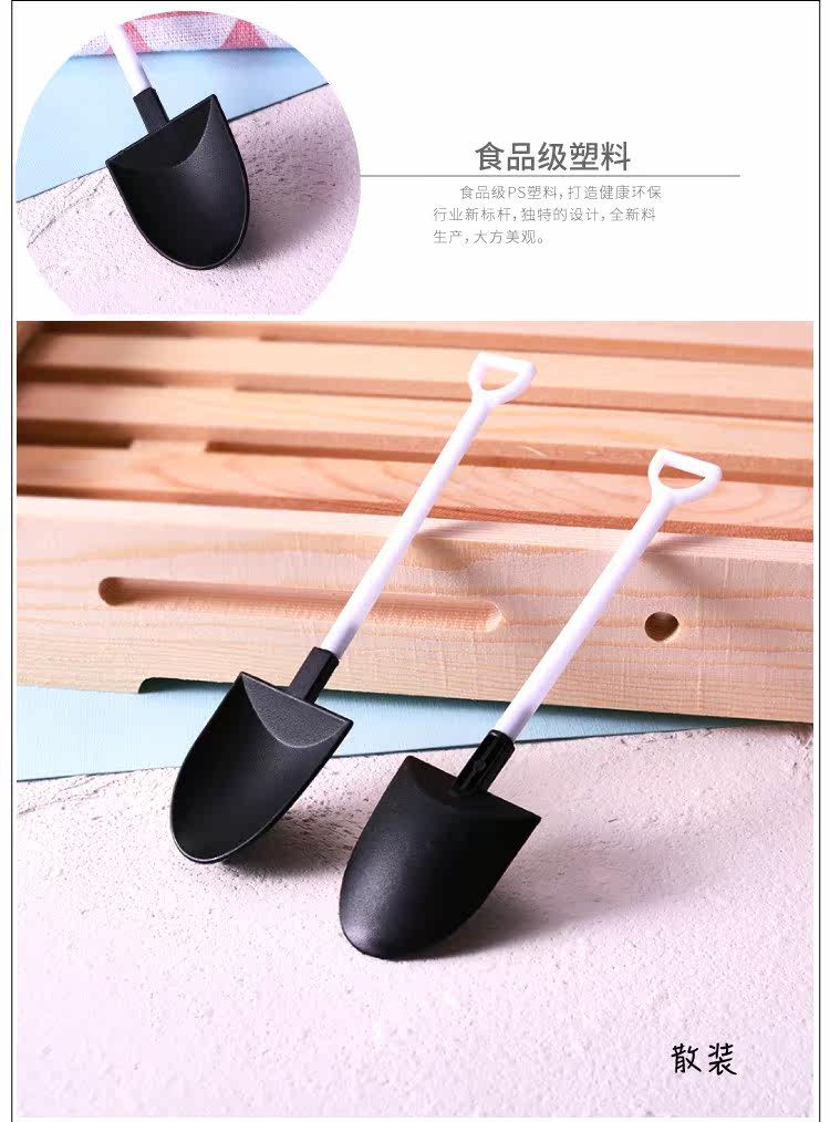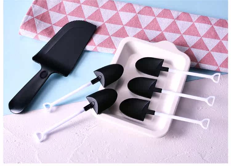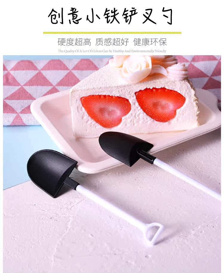 Торт -посуда торт торт пластик творческая маленькая железная ложка одноразовая ложка мороженое лопата черно -белая лопата маленькая ложка