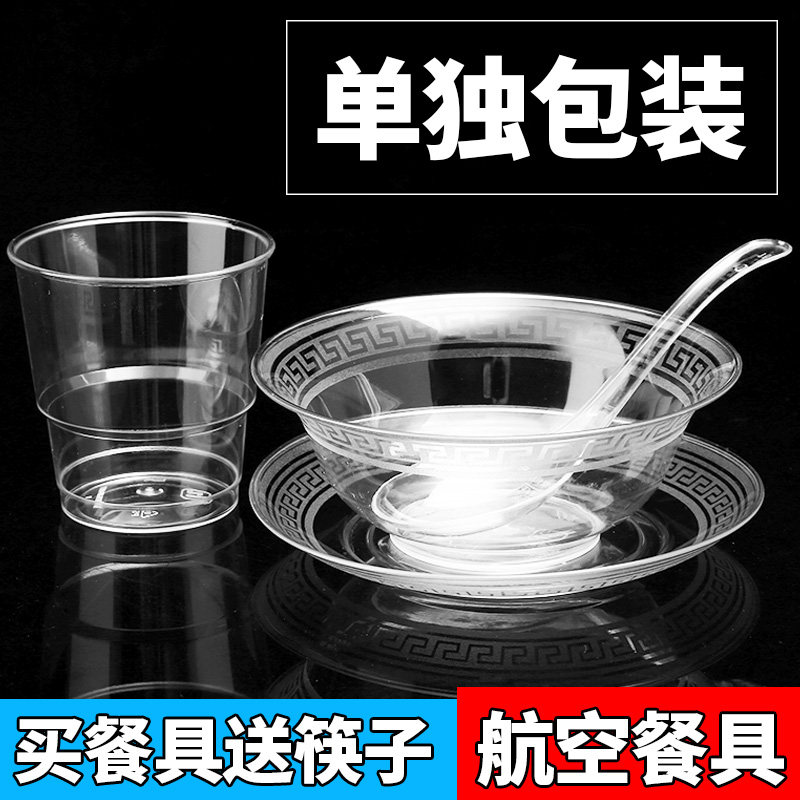 Одноразовая посуда, пластиковый прозрачный комплект, 4 предмета, увеличенная толщина
