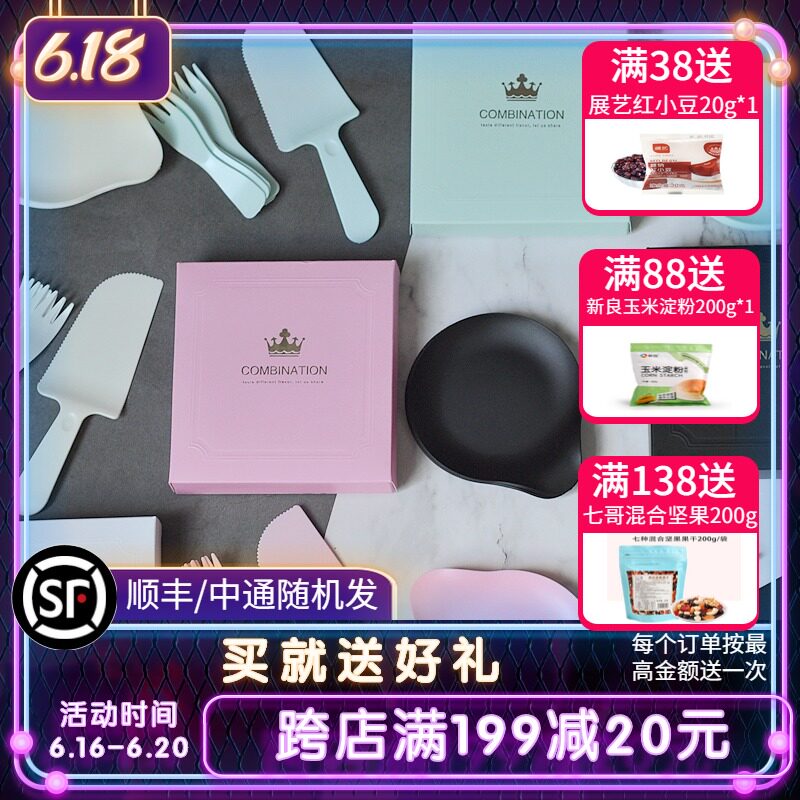 Торговая посуда набор пластикового ножа на день рождения и вилочная коробка Установленная капля воды -Десертный нож и вилочный диск.